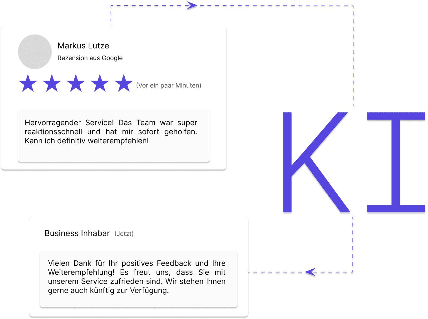 Automatisierte Antworten auf Google-Bewertungen effizient, individuell und zeitsparend.
