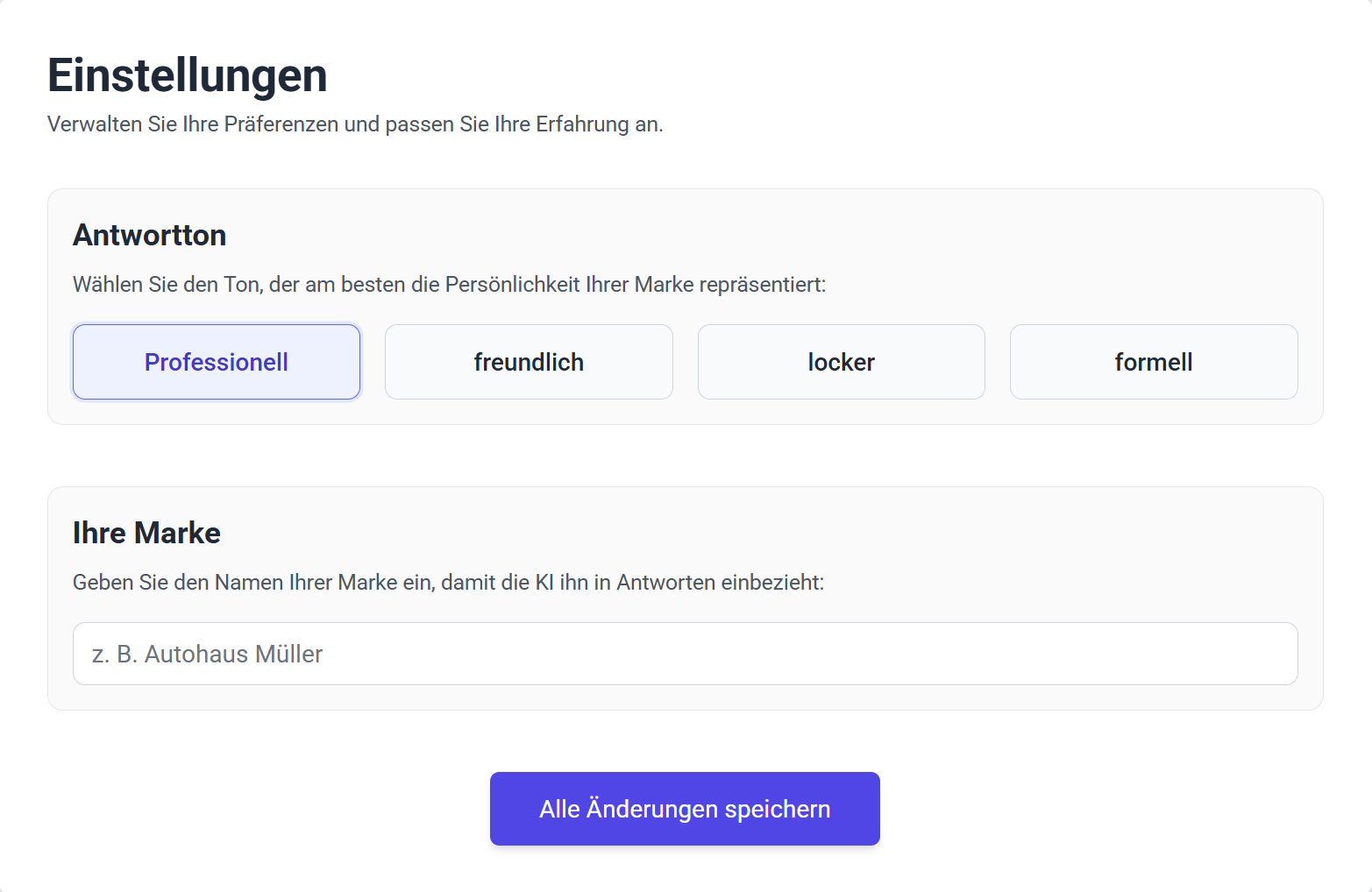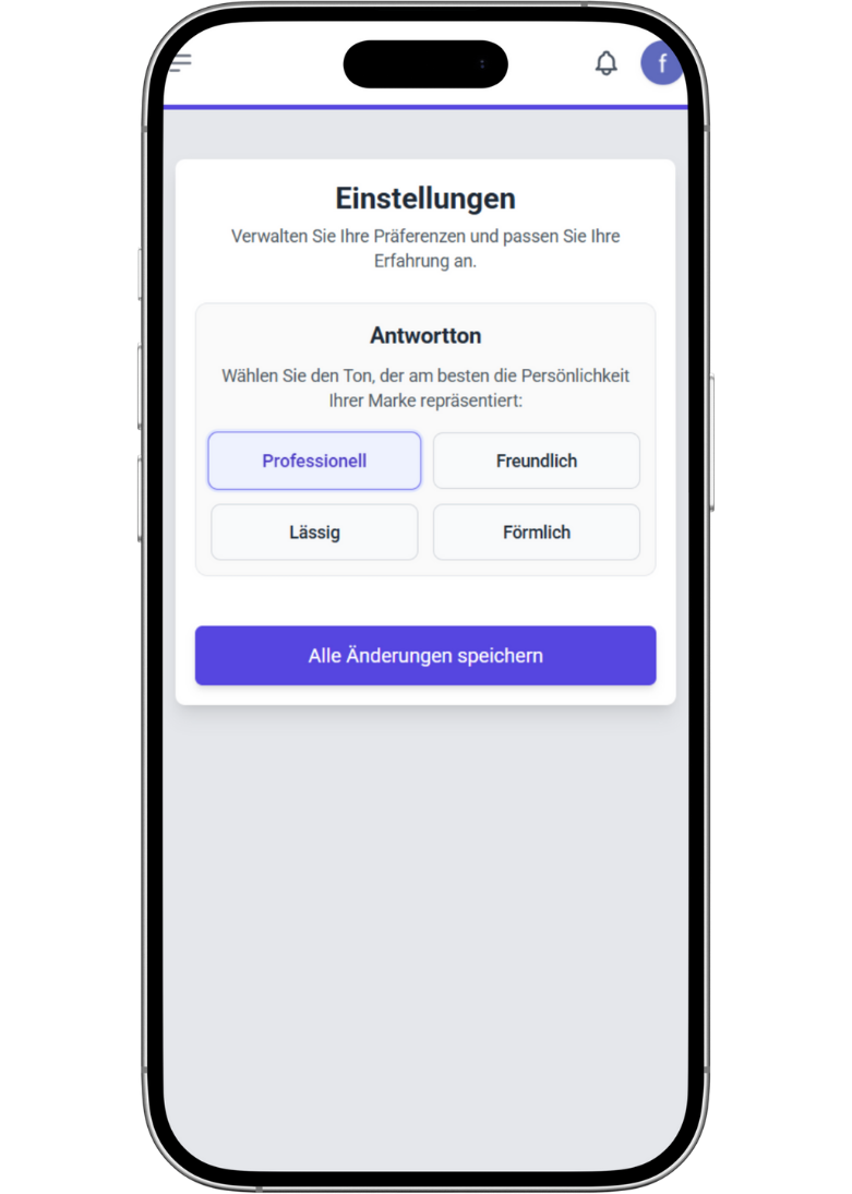 Passe die Antworten an den Ton deiner Marke an – formell, informell oder freundlich.
