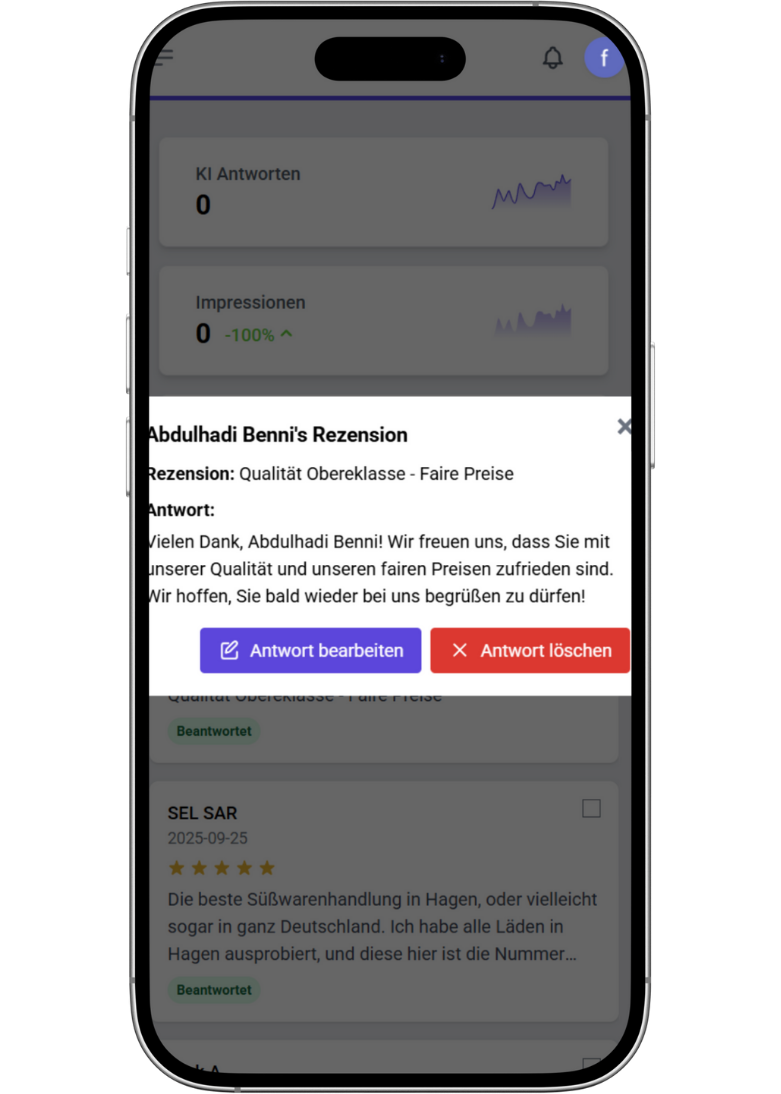 Repufiy beantwortet täglich alle neuen Bewertungen –